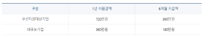 ● 지원 금액: 근로자 1인당 최대 720만 원까지 지원되며, 이는 최대 월 60만 원을 12개월 동안 지원하는 것을 의미합니다. ● 지급 조건: 지원 대상 근로자를 고용하여 6개월 이상 고용을 유지한 경우, 1년간 매 6개월마다 지급됩니다. 단, 지급되는 장려금은 '고용산재보험료징수법' 제16조의 10에 따라 사업주가 신고한 보수를 초과할 수 없습니다.