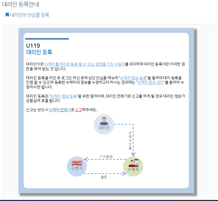 또한, 이 서비스는 유병자, 장애인, 독거노인 등 의료 서비스 도움이 필요한 사람들이 개인정보 및 병력, 약물복용 정보, 보호자 연락처 등을 사전에 미리 등록하는 시스템입니다. 본인이 직접 하기 어려운 경우 보호자 및 사회복지사 등 대리인 등록도 가능합니다.